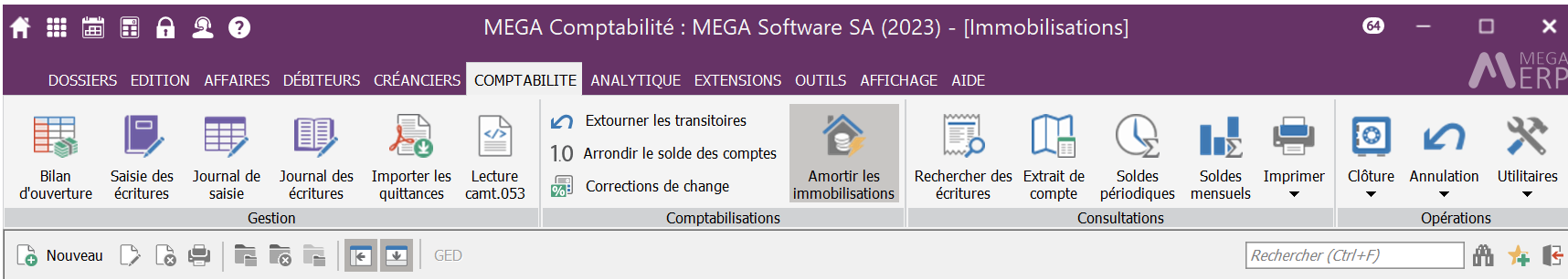 Depuis le menu COMPTABILITE puis l'icône Amortir des immobilisations