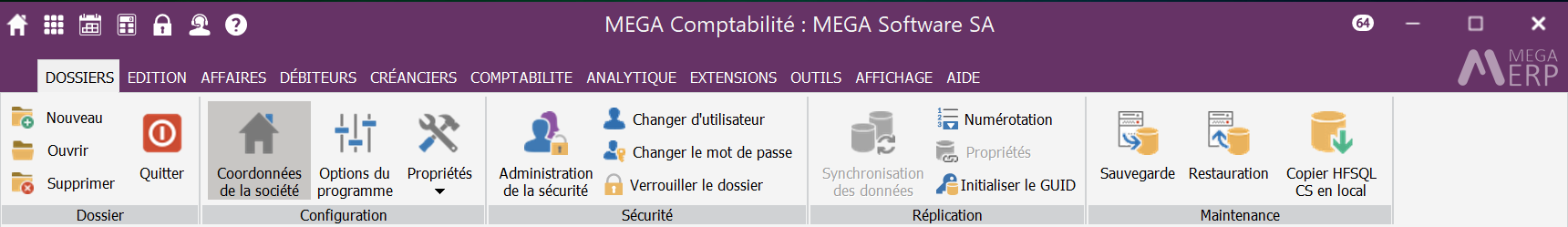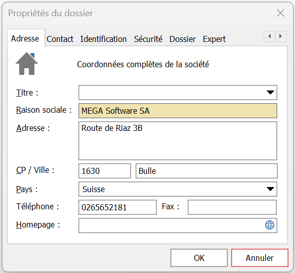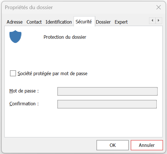 Remarque: Vous pouvez protéger le dossier de votre Société avec un mot de passe depuis l'onglet Sécurité.