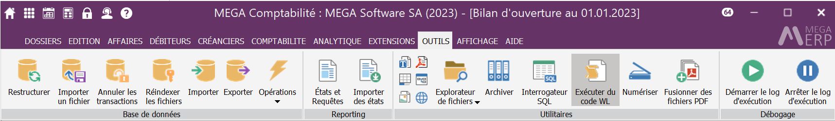 Option du menu OUTILS | Utilitaires | Exécuter du code WL