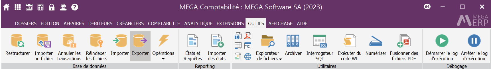 1. Sélectionnez l'option OUTILS | Base de données | Exporter dans le ruban.