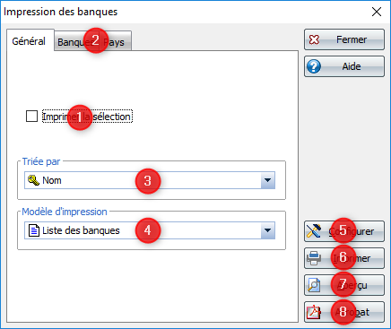 - Si cette option est cochée, l'impression se fait sur les éléments sélectionnés dans la liste qui a ouvert de dialogue.