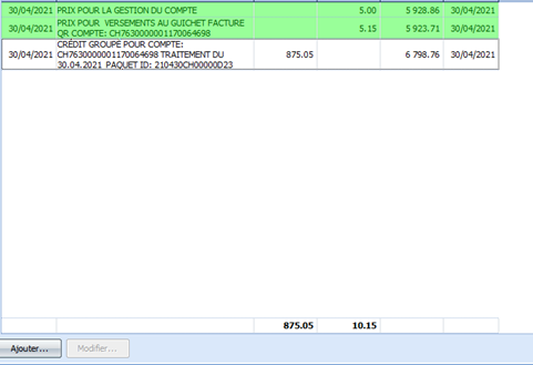 Les écritures importées par le CAMT054 dans Module MEGA Gestion Intégrée sont immédiatement repérées et apparaissent avec un fond vert.
