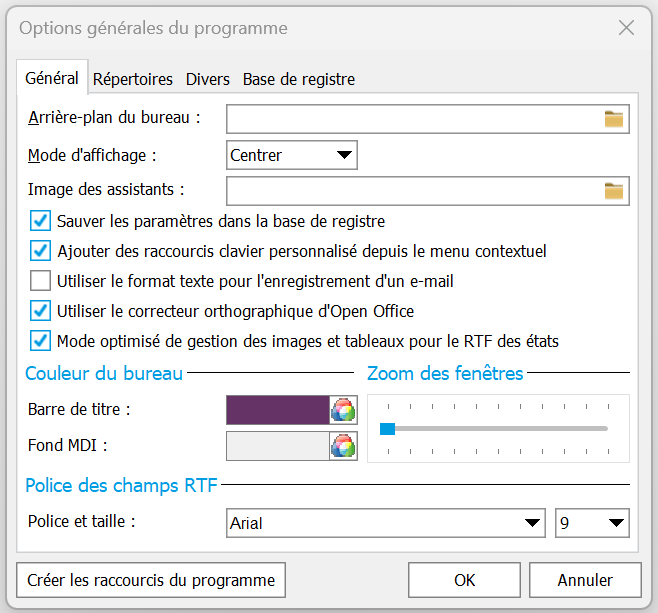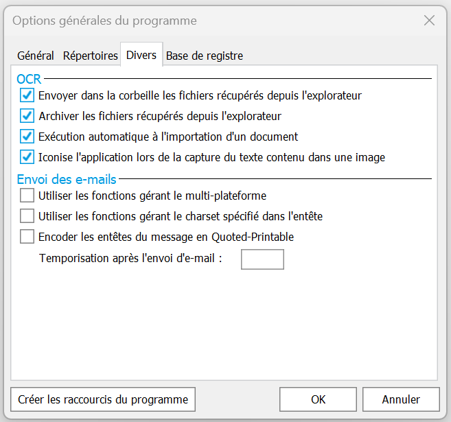 Options du programme