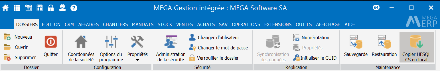 Option du ruban DOSSIERS | Maintenance | Copier HFSQL CS en local