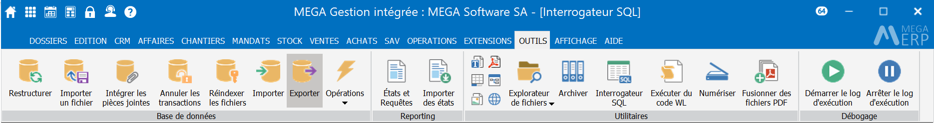 1. Sélectionnez l'option OUTILS | Base de données | Exporter dans le ruban.