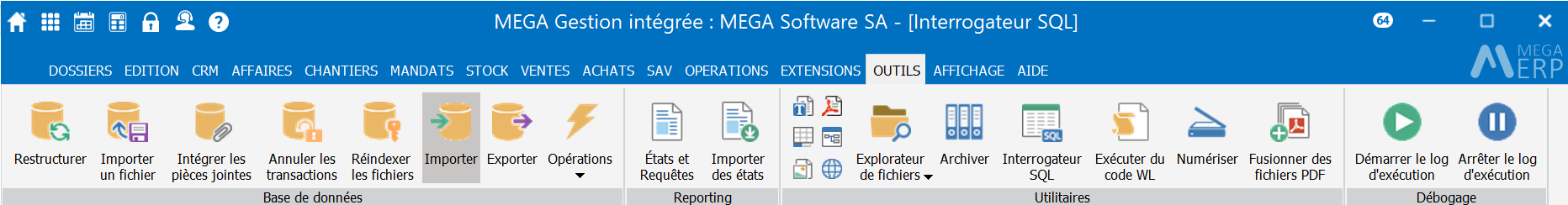 Option du menu OUTILS | Base de données | Importer