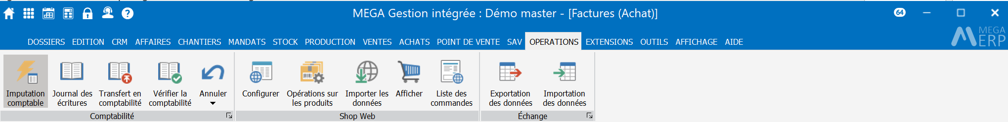 Cette fonction sert à générer et envoyer les écritures automatiquement dans le module MEGA Comptabilité.