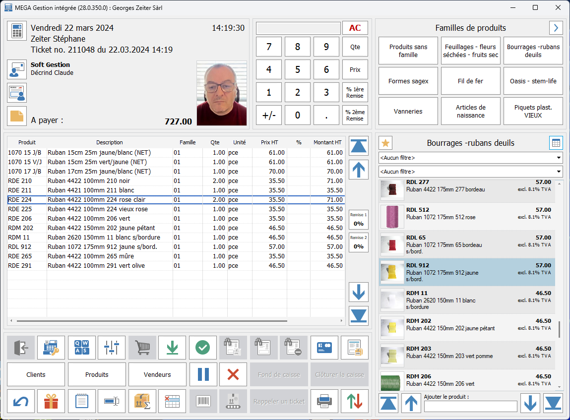 - Sélection de la caisse à utiliser. Il est possible de créer autant de caisses que vous le souhaitez et la dernière caisse sélectionnée par l'utilisateur sera restaurée lors du prochain lancement du programme.