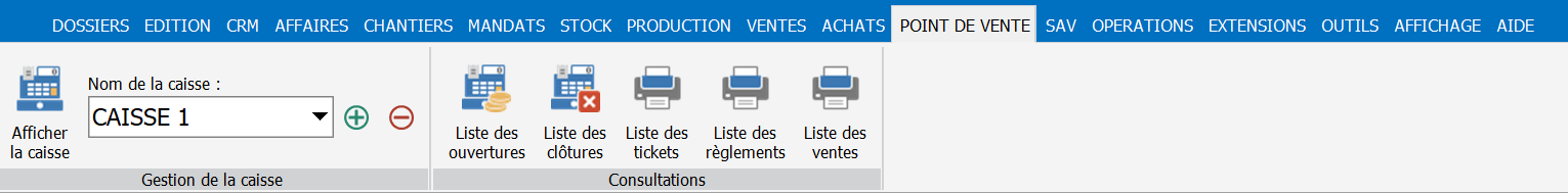 Le lancement du module point de vente se fait depuis le ruban POINT DE VENTE :