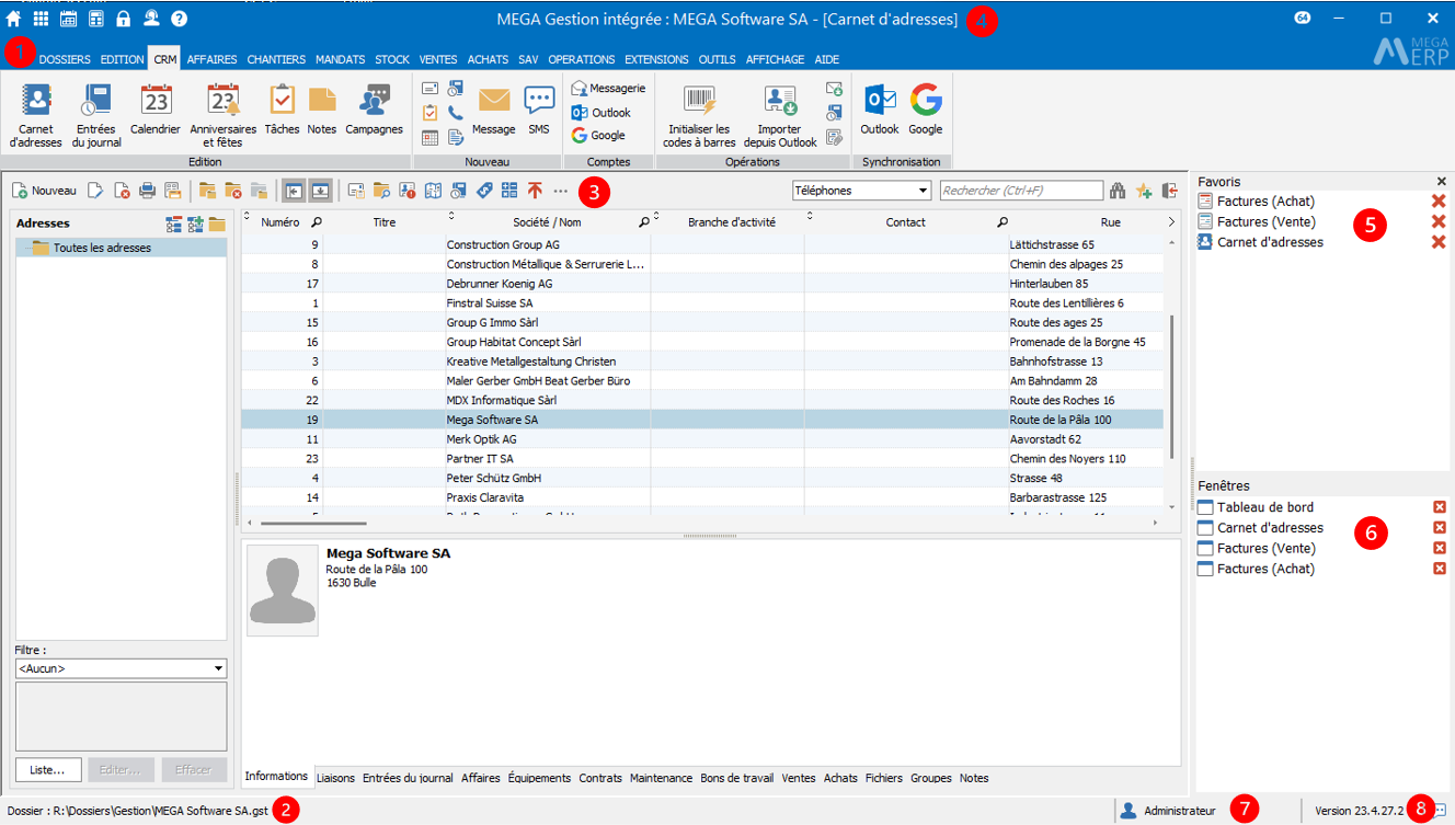 Barre d'outils contenant toutes les actions de la fenêtre affichée.