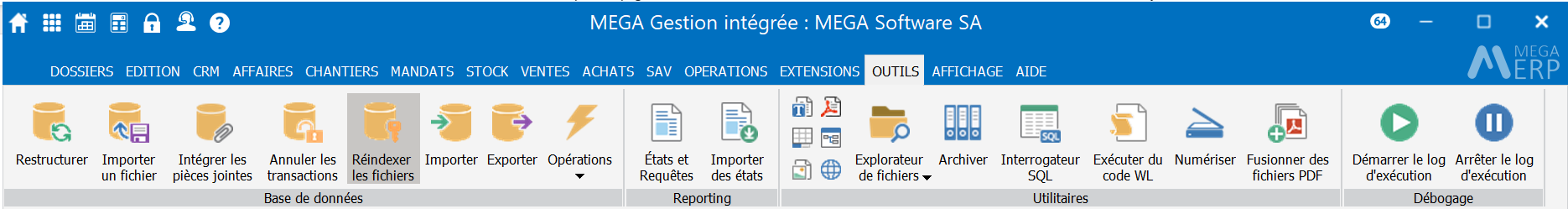 Option du menu OUTILS | Base de données | Réindexer les fichiers
