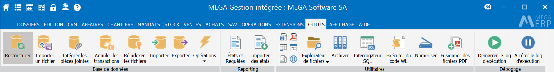 Attention : Cette opération peut durer longtemps en fonction du volume de données à restructurer. Le programme ne doit pas être utilisé sur d'autres postes pendant cette opération et il ne faut jamais l'interrompre sinon l'utilisation de la base de données risque de générer des erreurs.