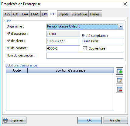 Remarque : La gestion de la LPP n'est pas obligatoire dans la version swissdec 4.0 et le logiciel MEGA Salaires ne traite pas les données de LPP.