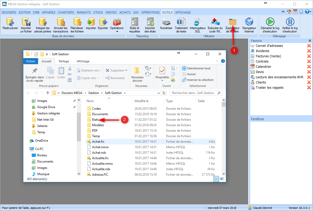 - Sélectionnez l'option du ruban OUTILS | Utilitaires | Explorateur de fichiers.