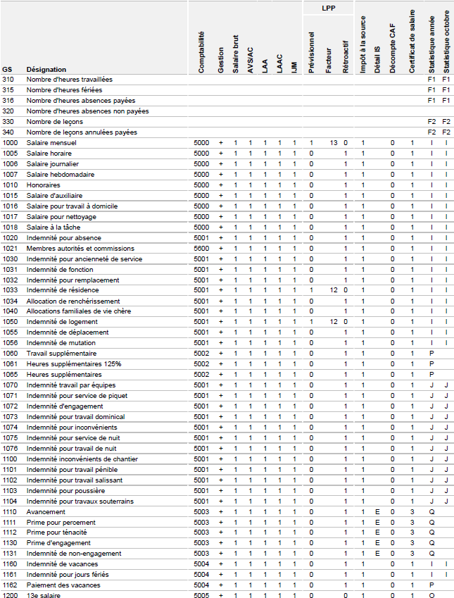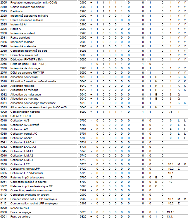 Il ressort de la gestion des genres de salaire si un genre de salaire est soumis à cotisations, non sou-mis à cotisations, négatif ou positif.
