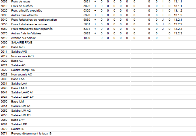- accumulateur (taux horaires, allocations de vacances et pour jours fériés en %, etc.)