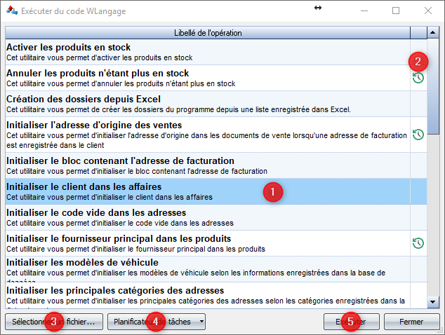 Attention : L'exécution du code WL est une fonction avancée qui ne doit être configurée que par un technicien maîtrisant parfaitement nos applications et connaissant la structure de la base données et les liaisons entre les différents fichiers.