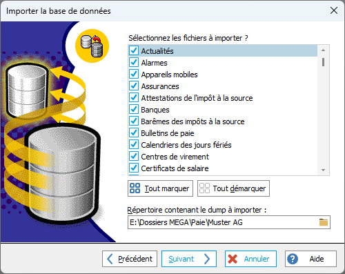 2. L'assistant d'importation de la base de données s'ouvre. Vous pouvez :