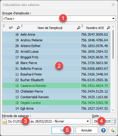- Liste multi-sélection des employés à traiter.