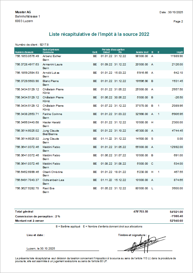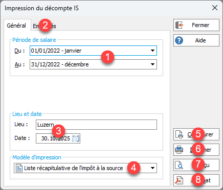 Option du ruban IMPRESSION | Impôts à la source | Décompte