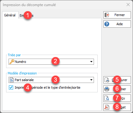 Option du ruban IMPRESSION | Employés | Décompte cumulé