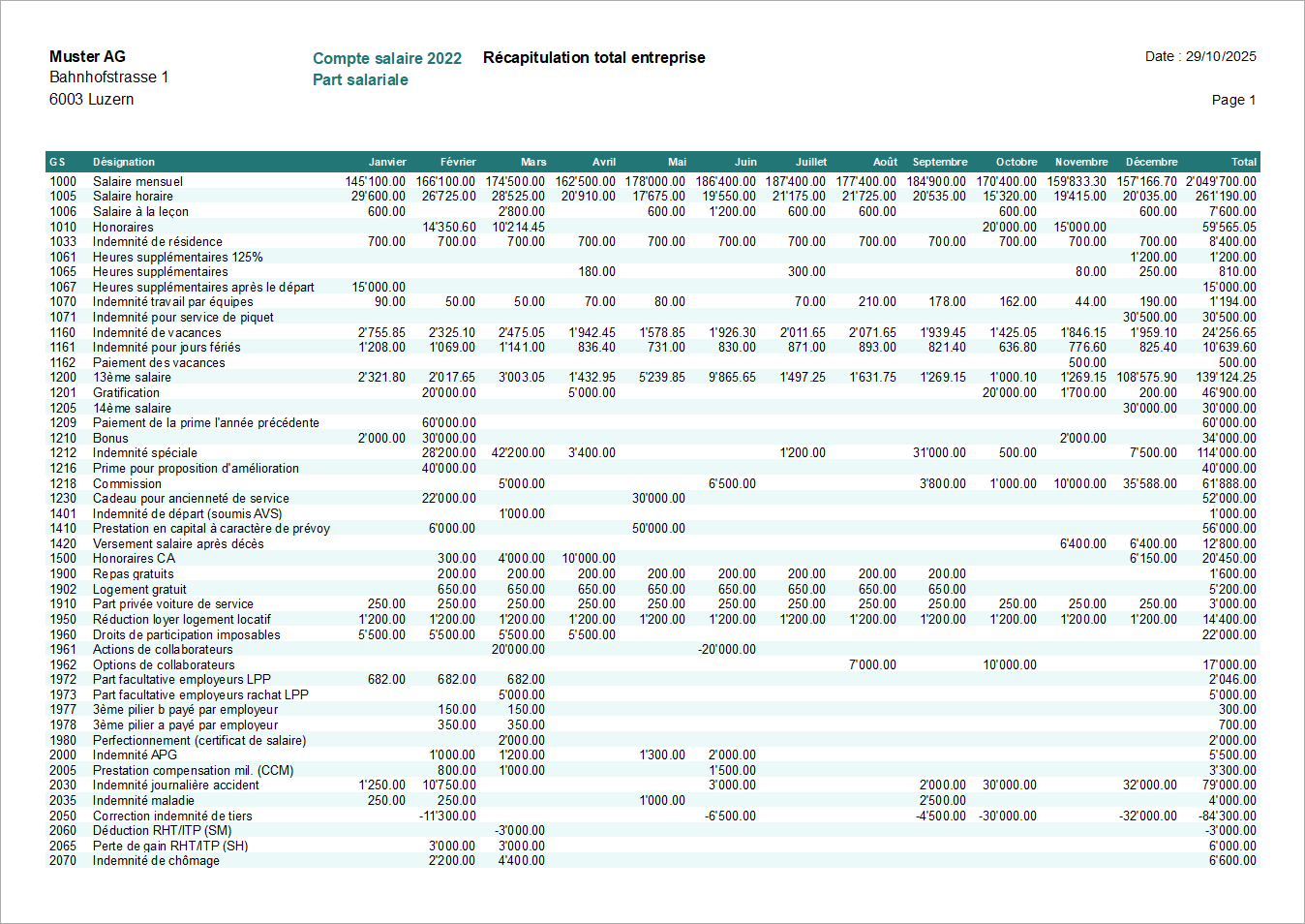 Cette impression vous permet d'imprimer le compte salaire de l'année en cours pour toute l'entreprise.