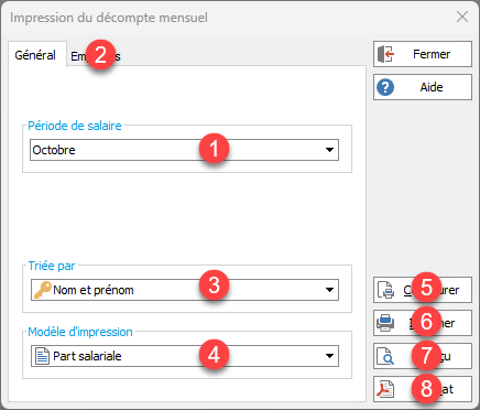 Option du ruban IMPRESSION | Employés | Décompte mensuel