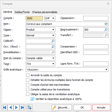 Indique le compte de transfert à utiliser pour le compte si le solde ne correspond pas à la classe de compte. Si un compte de liquidité est négatif, vous pouvez indiquer un compte de passif qui sera utilisé lors de l'impression du BILAN.