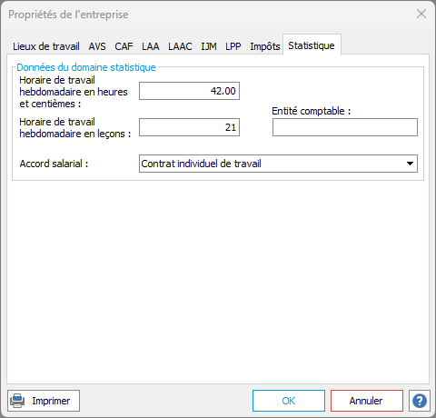 Durée de travail hebdomadaire individuelle (leçons) avec une référence aux leçons hebdomadaires prévues par l’entreprise.