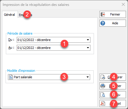 Dialogue standard d'impression avec sélection d'une période