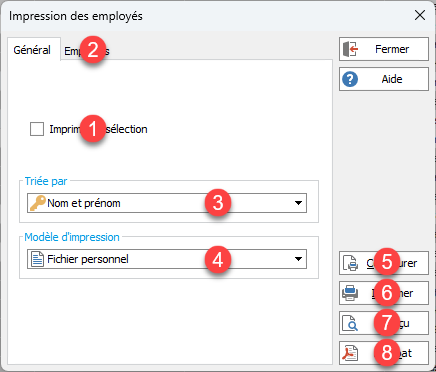 - Si cette option est cochée, l'impression se fait sur les éléments sélectionnés dans la liste qui a ouvert de dialogue.