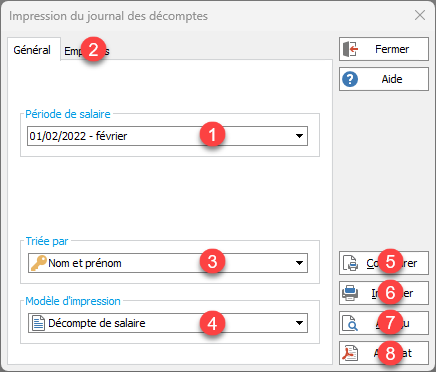- Sélection des employés à traiter. Tous les employés sont par défaut sélectionnés.