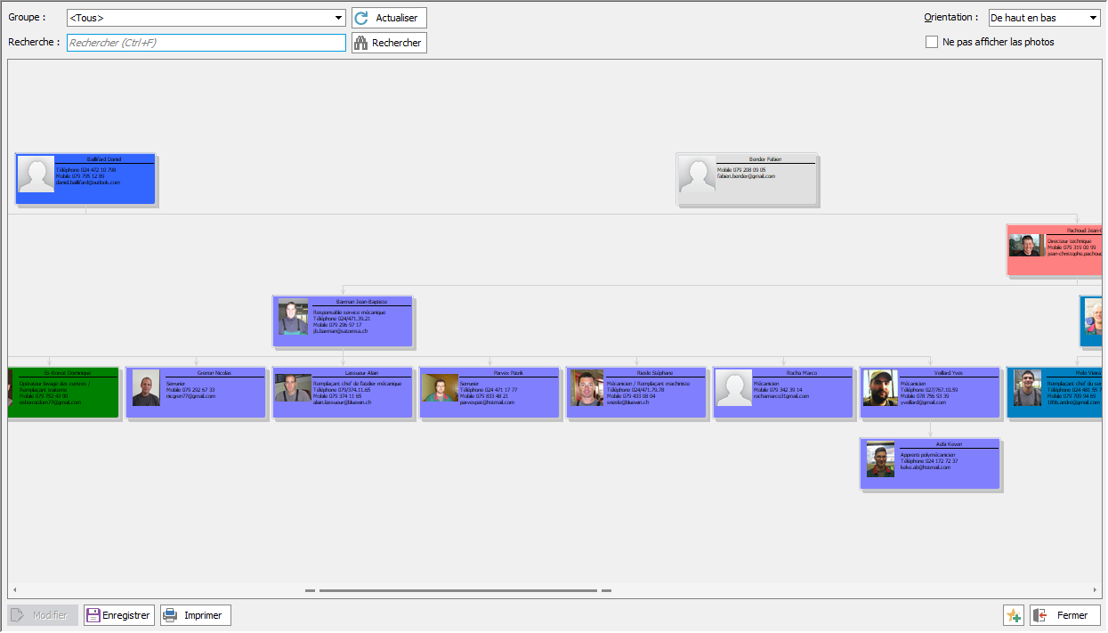 Option du ruban EDITION | Salaires | Organigramme de la société