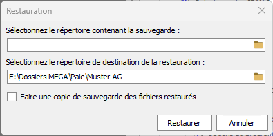 - indiquer le répertoire contenant la sauvegarde. Vous pouvez sélectionner ce répertoire dans l'explorateur en cliquant sur le bouton ... ou en appuyant sur la touche F4;