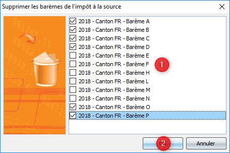Option du ruban OPERATIONS | Impôts à la source | Supprimer les barèmes.