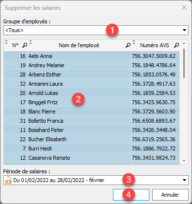 - Période de salaire à supprimer. Les périodes avec un cadenas fermé ne peuvent plus être modifiées.