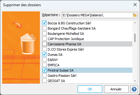 Cliquez sur le bouton OK pour supprimer les dossiers sélectionnés ou cliquez sur le bouton Annuler pour abandonner l'opération.