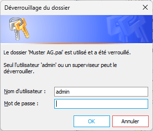 Seul l'utilisateur connecté ou un superviseur pourra déverrouiller le dossier. Il est important de protéger le compte de l'utilisateur avec un mot de passe.